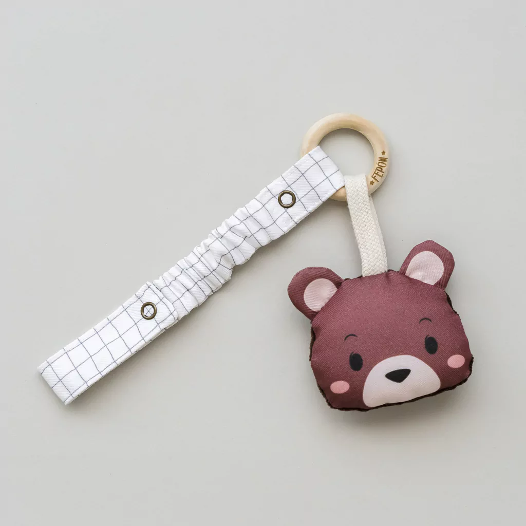 Se cuelgan en el gimnasio con tiras de tela con broches metálicos que son ajustables a 2 alturas, las tiras son adaptables a la baranda de la cuna, cochecito, etc... para que pueda llevar su jueguete preferido a todos lados sin perderlo!