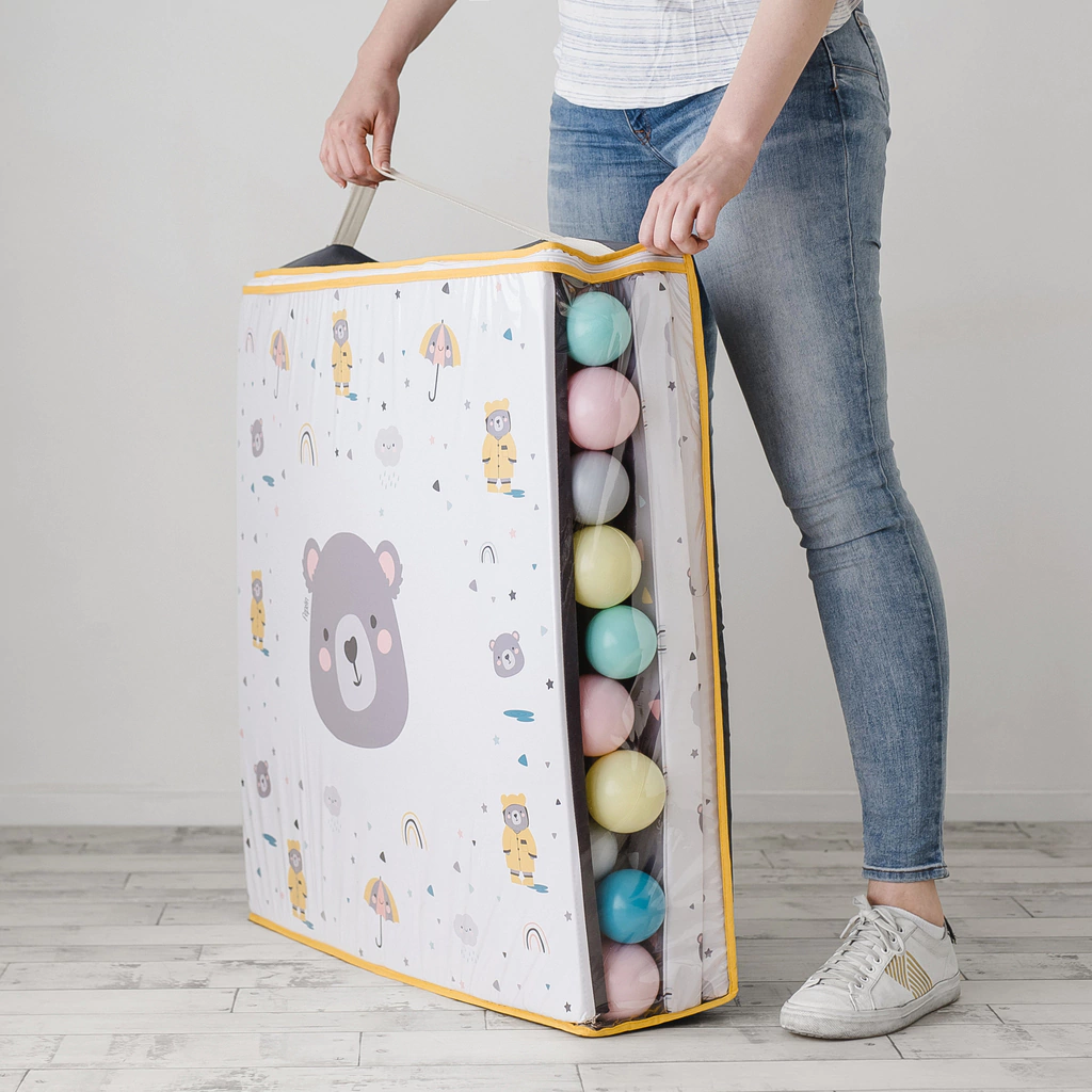 Nuestros peloteros son una excelente opción para que los más peques exploren su cuerpo, sus movimientos y pongan en práctica su imaginación. Disfrutan mucho zambullirse entre las pelotas, meterlas, sacarlas, tirarlas por el aire, guardarlas en recipientes, hacerlas rodar, agruparlas por colores, dotarlas de sentido. Sentir como se aplastan contra su cuerpo o como deslizan suavemente por él. Son innumerables las posibilidades de juego que ofrecen los peloteros, además de ser un espacio seguro para explorar.